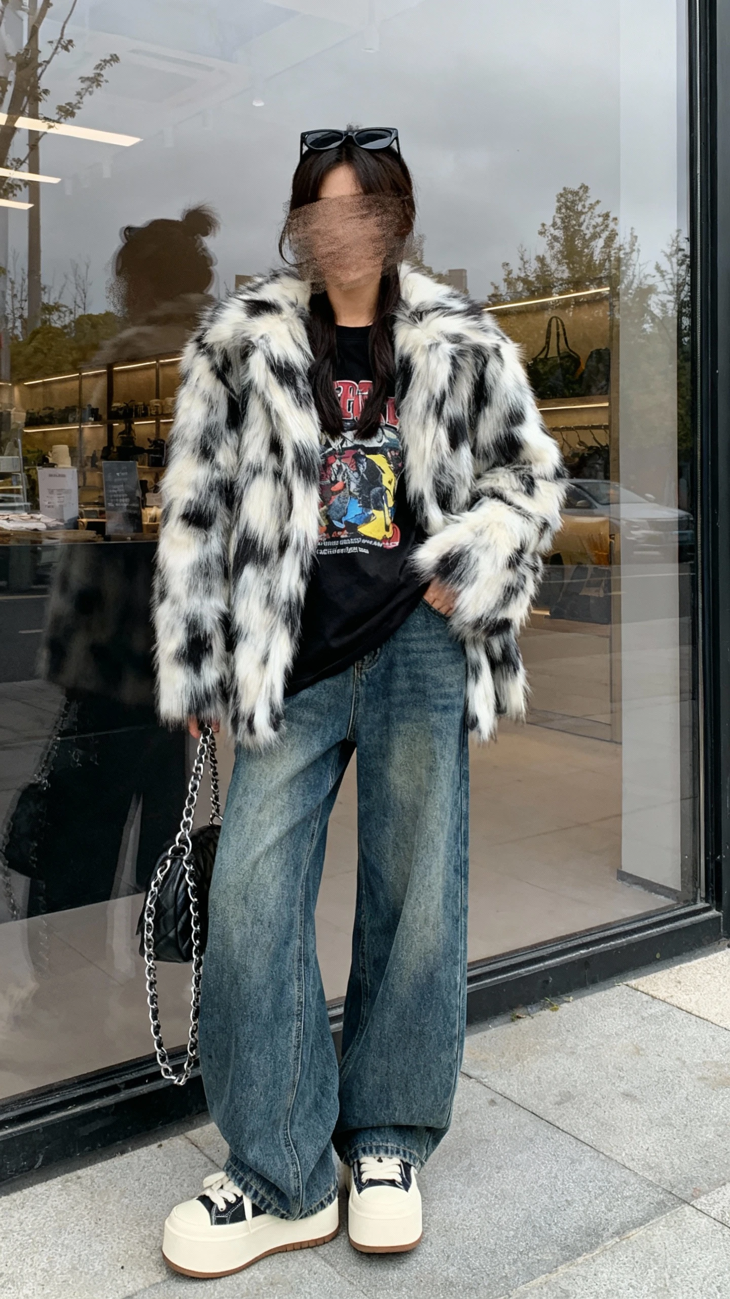 When you want your coat to do the talking, go bold. A statement fur (think texture, color, or pattern) over baggy denim is the perfect high-low combo that looks editorial but totally wearable.