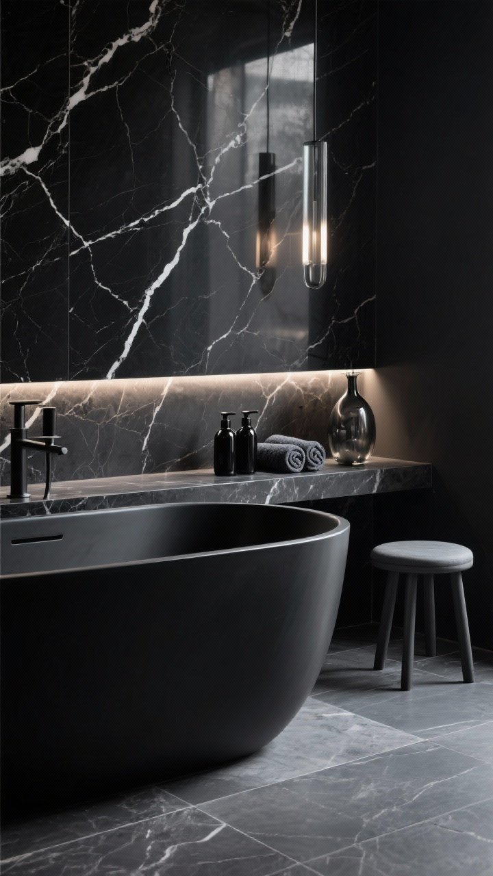 5. Modern Noir With Moody Stone and Matte Black