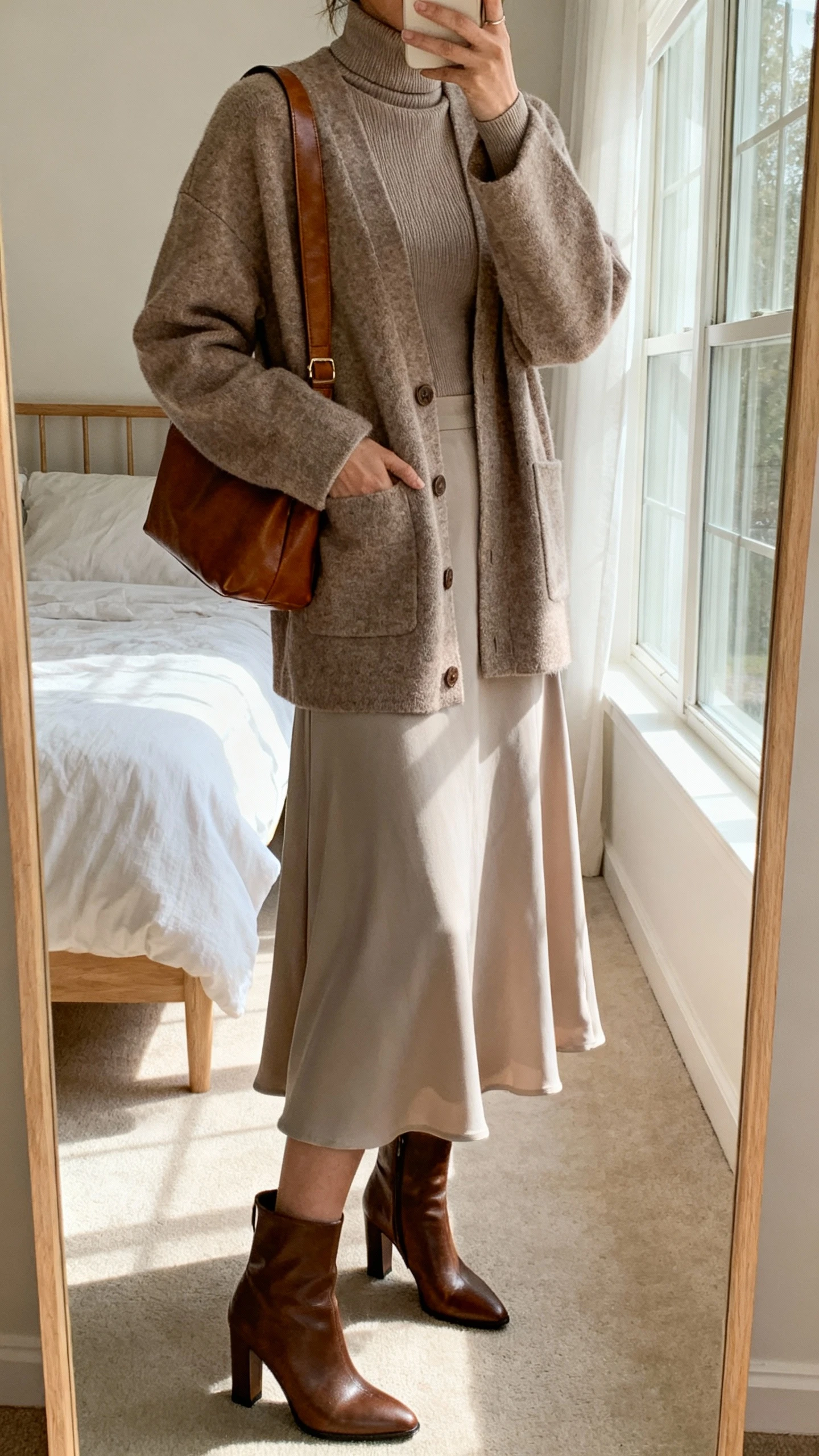 8. Cardigan Coat + Turtleneck + Midi Skirt That Moves With You