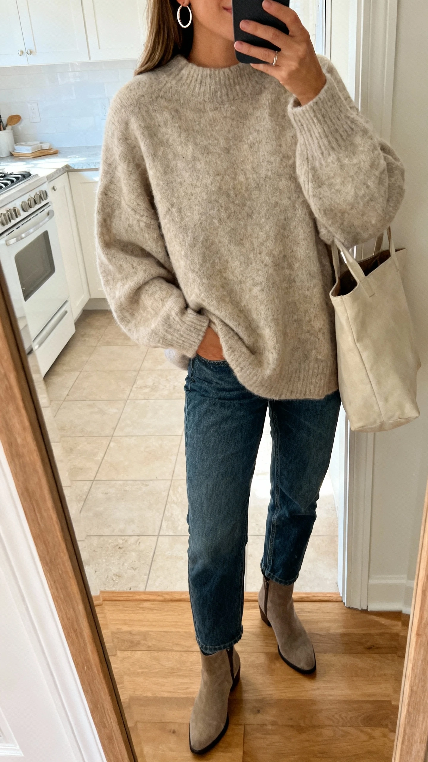 2. Cozy Oversized Sweater + Straight Jeans That Always Looks Chic