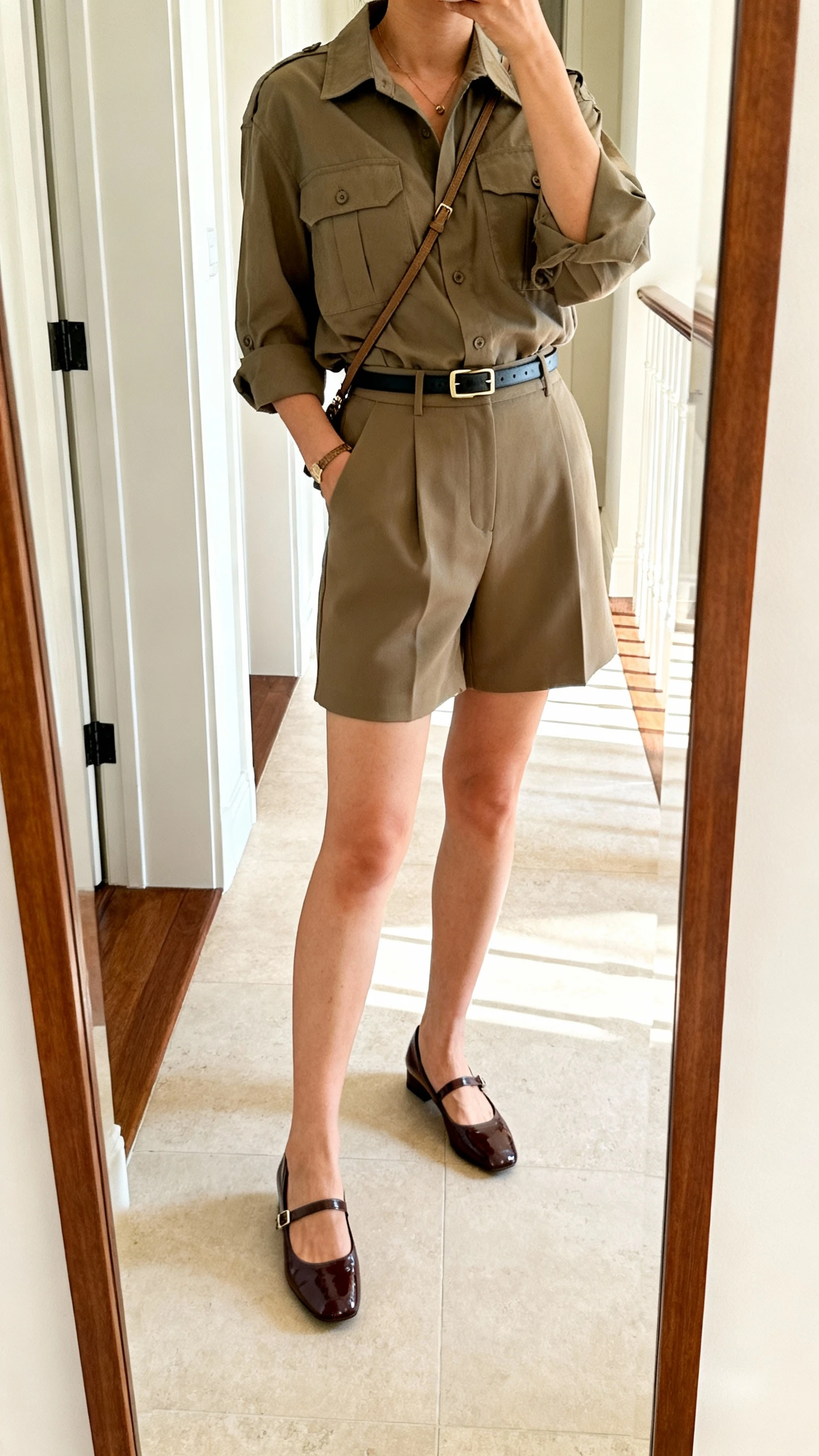 6. Modern Off-Duty: Utility Shirt, Tailored Shorts, And Polished Flats
