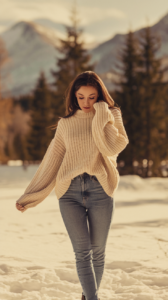 Picture this: a chunky cream sweater that falls mid-thigh, paired with high-waisted skinny jeans that hug just enough to define your frame. Add a sleek belt to subtly create that illusion of curves.