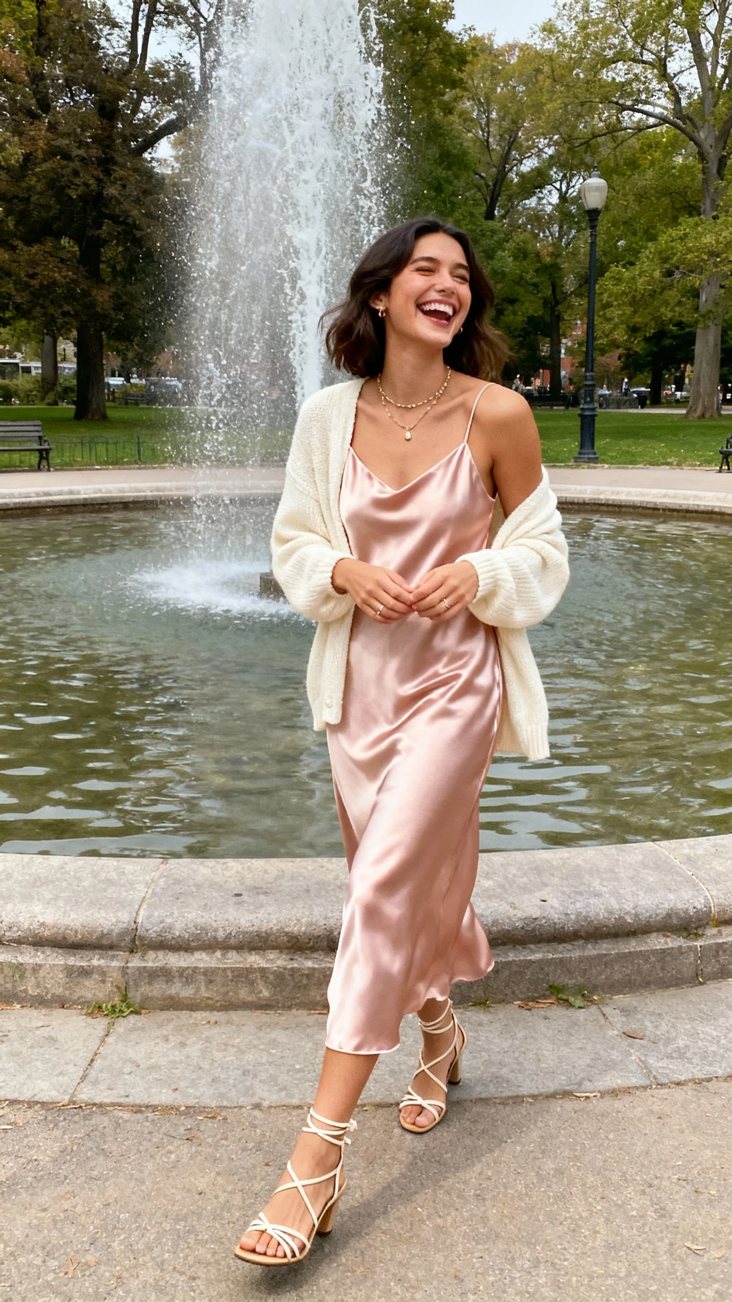 1. Blush Satin Slip + Soft Cardigan That Glows Under Candlelight
