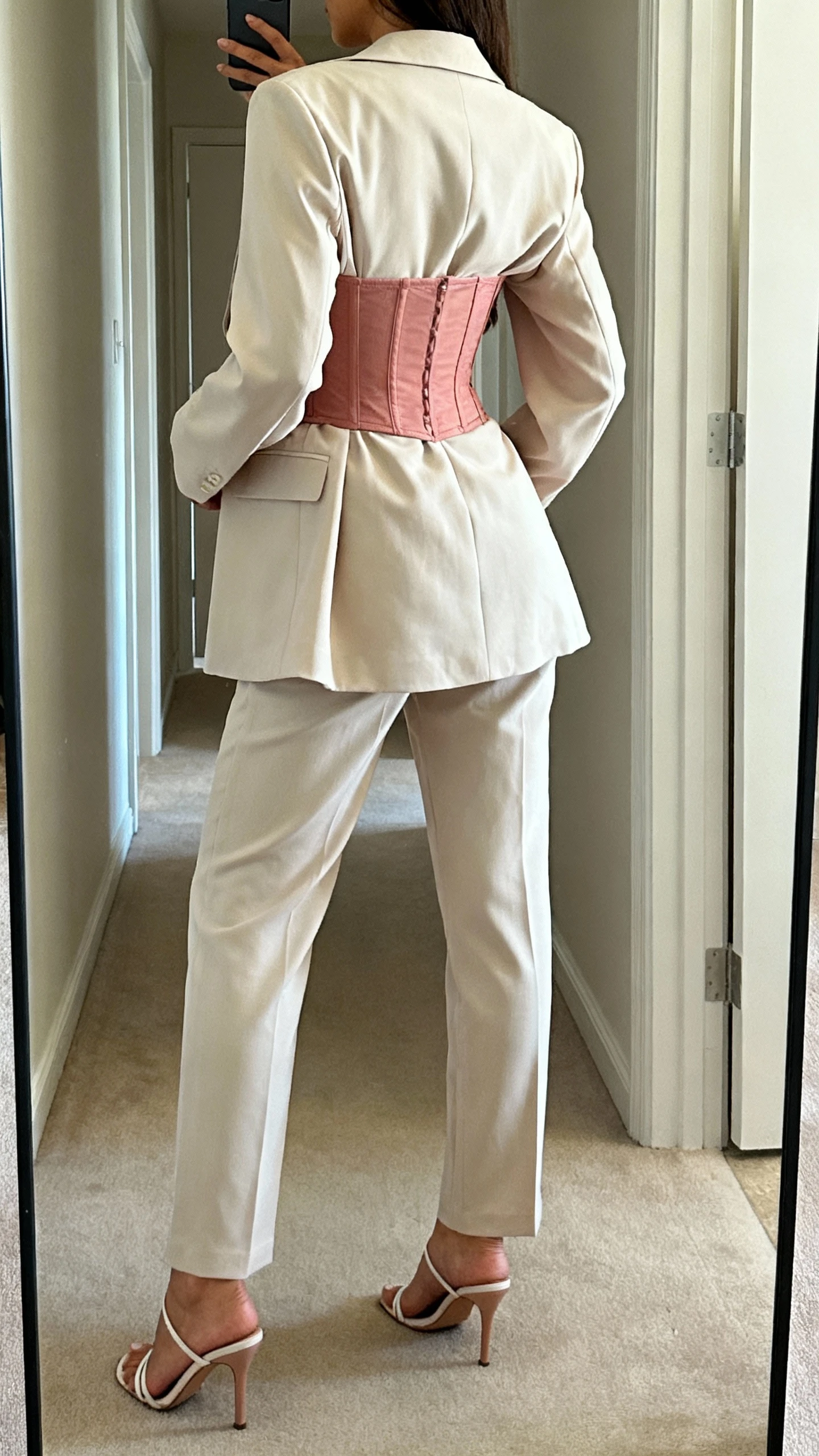 7. Soft-Edge Suiting With A Rosy Corset Top