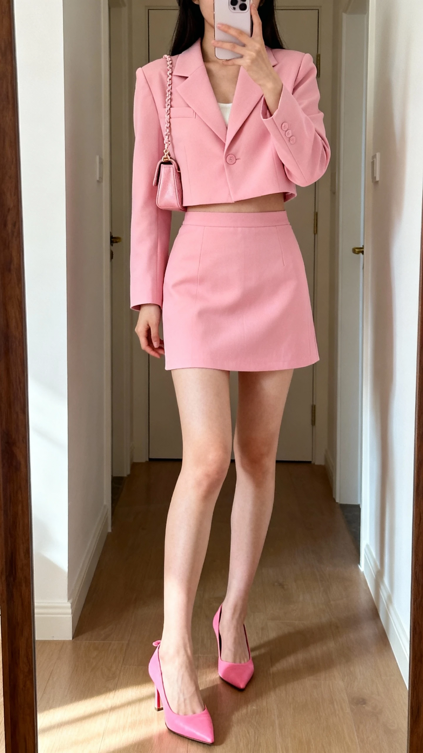 Monochrome pink? Yes, please. A coordinated set turns heads without a fuss and photographs beautifully. It’s playful, confident, and surprisingly versatile—especially if the pieces work with the rest of your wardrobe later.