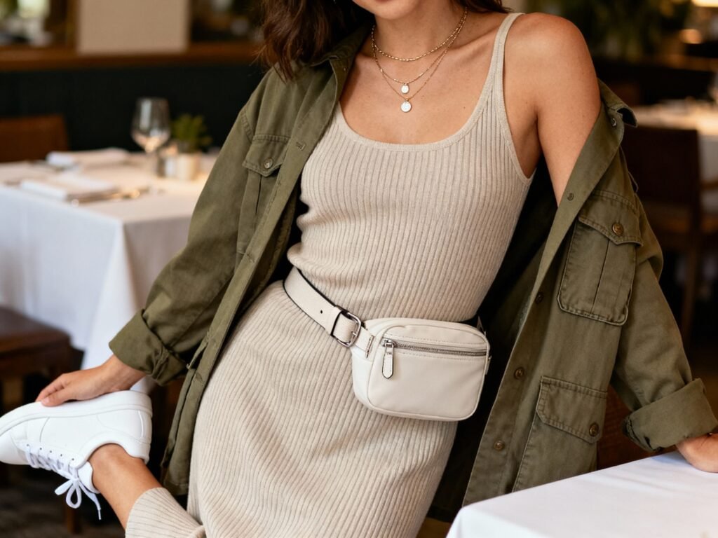 - Elevate: belt bag to cinch the waist at dinner, delicate necklace stack