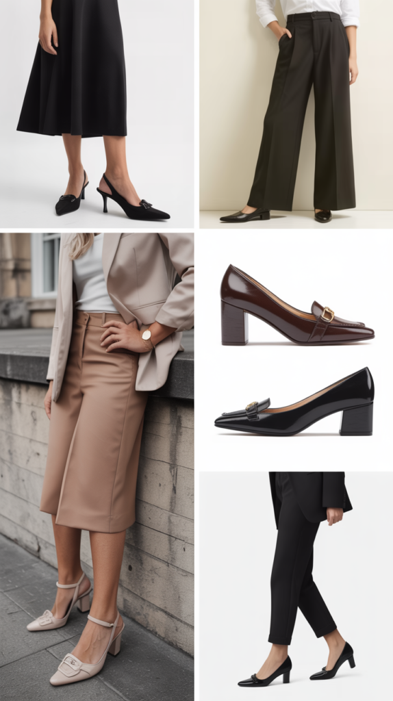 We love a shoe that whispers “promotion” and shouts “fun.” Build outfits around silhouettes that flatter both.