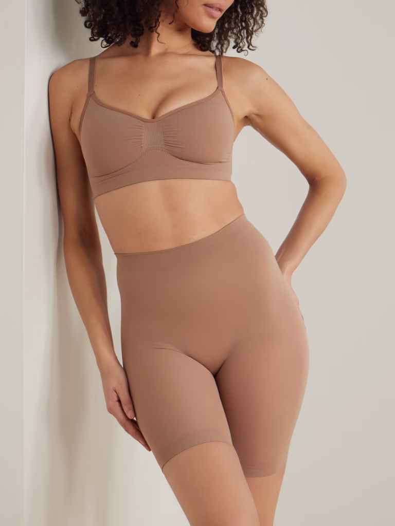 If you want real hold without the horror-movie squeeze, Skims delivers. The sculpting bodysuits, mid-thigh shorts, and high-waisted briefs do the heavy lifting, while the seamless collections keep things comfy for everyday.
