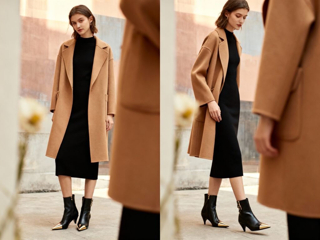 - Black + Camel/Tan: Softens the drama. A camel coat or tan knee boots instantly reads expensive.