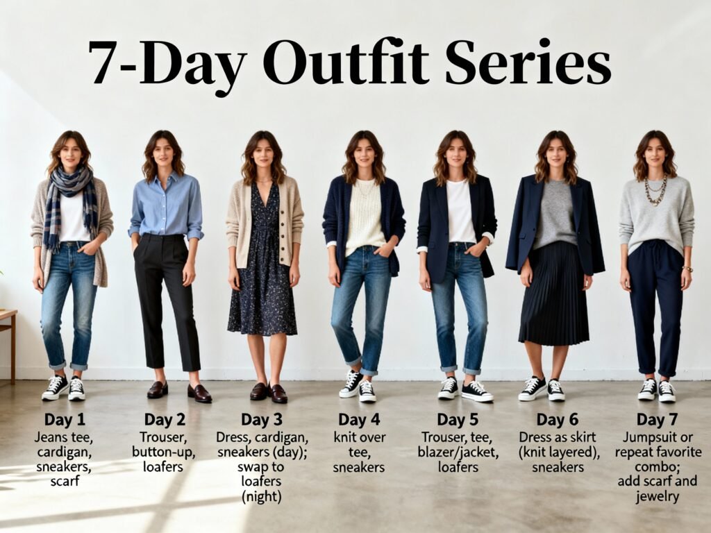- Day 7: Jumpsuit or repeat favorite combo; add scarf and jewelry for a fresh spin.