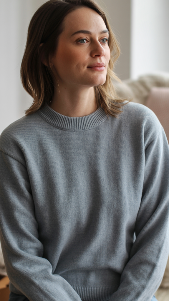 - Refined knits over chunky sweaters. Think merino, fine rib, or compact cotton.