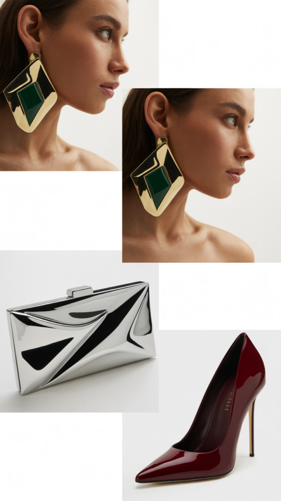 Pick one hero item—don’t overdo it. Think bold earrings, a metallic clutch, or a standout shoe. Let it shine, and keep everything else streamlined.