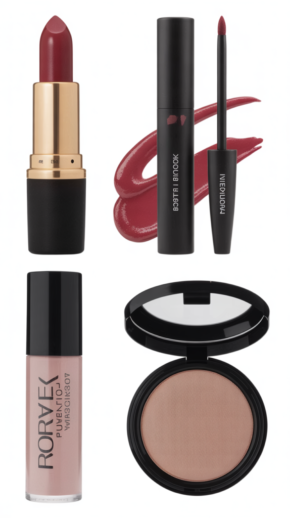 - Lips: Swap tinted balm for a bold satin or matte.Brick, berry, or deep rose looks luxe.