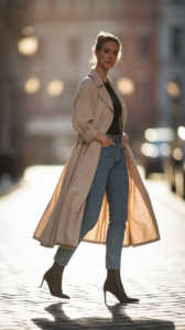 15. Lightweight Trench + Slim Jeans + Ankle Boots