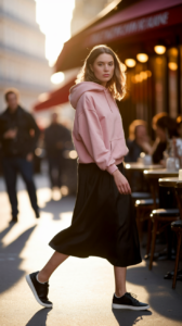 8. Hoodie + Midi Skirt + Tennis Sneakers