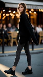 3. Oversized Sweater + Skinny Jeans + Chunky Sneakers