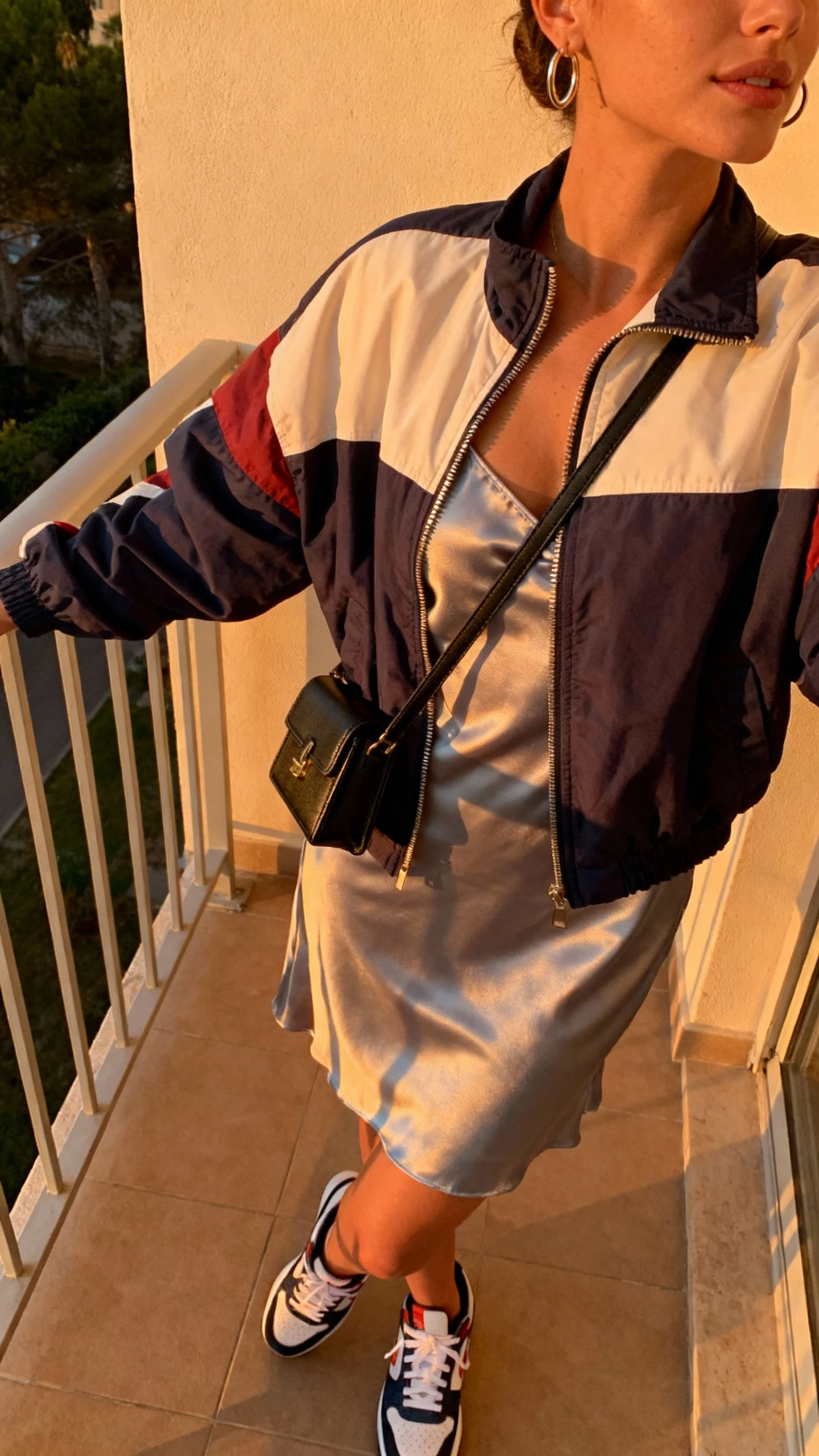 2. The Sunset Slip Dress + Sporty Layer That Screams “Golden Hour”