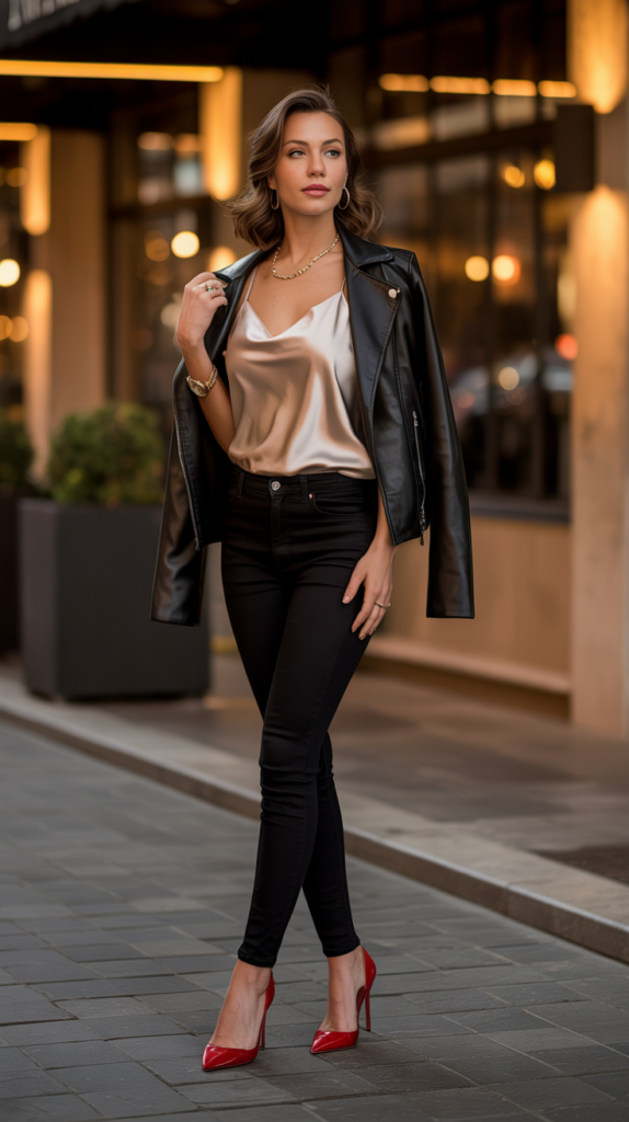 Pro tip: go for dark wash skinnies with black stilettos for that sleek, city-girl vibe.
