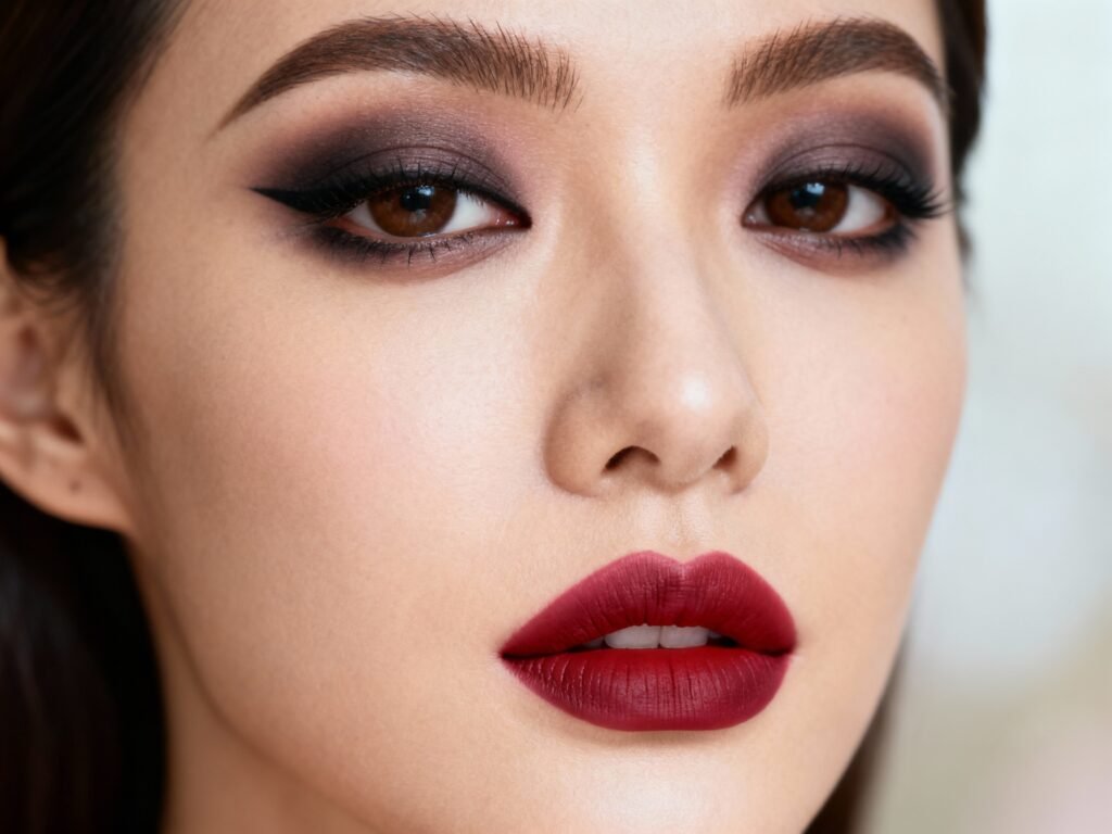 Do a red lip with soft eyes, or a smoky eye with a muted lip. Keep skin satin and brows soft to avoid the “full club” effect.