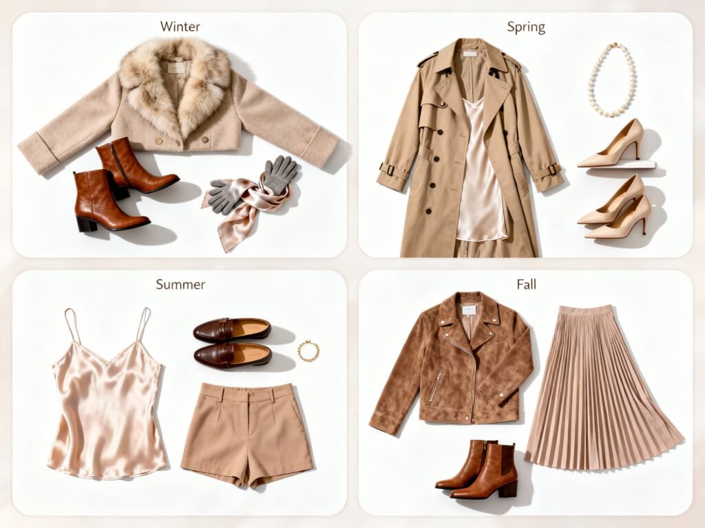 – Summer: Silk camisole, tailored shorts, loafers, gold anklet (tiny, not beachy).