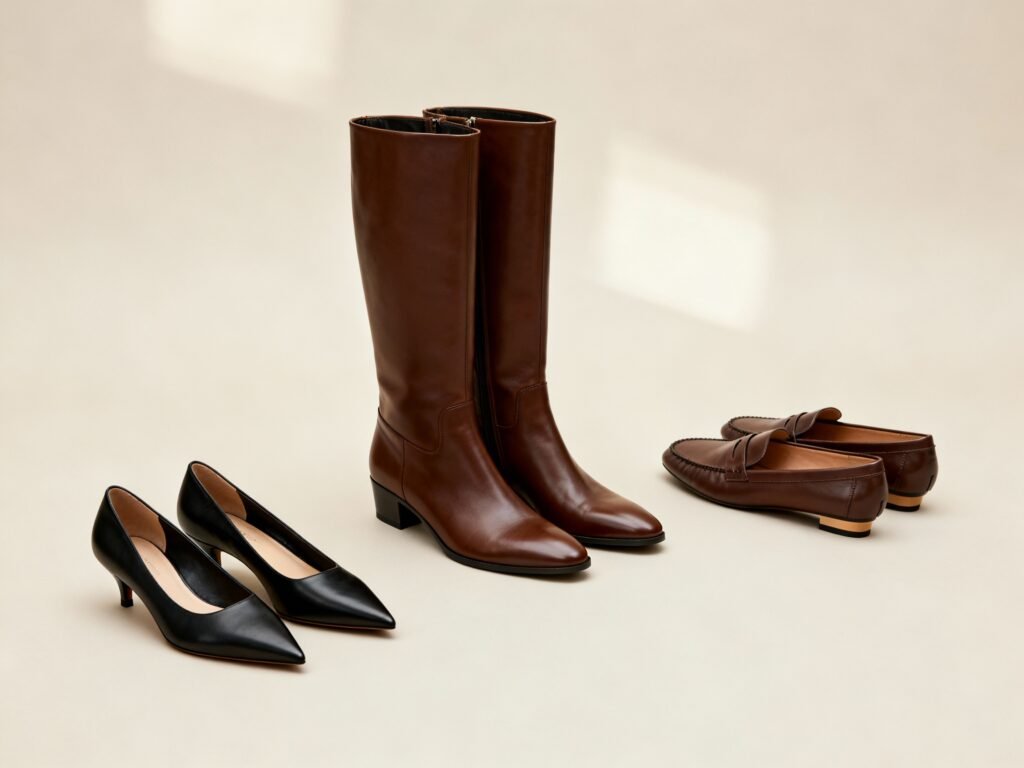 A sharp pump or sleek boot gives the same authority as a sky-high platform—just more quietly.