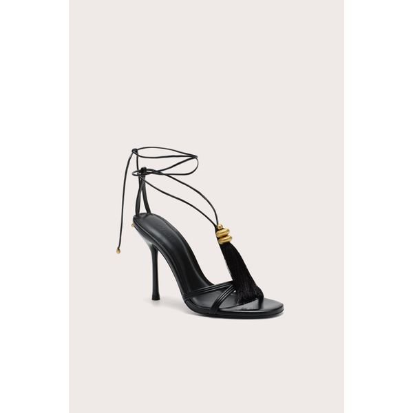 Strappy heels in metallic or patent leather