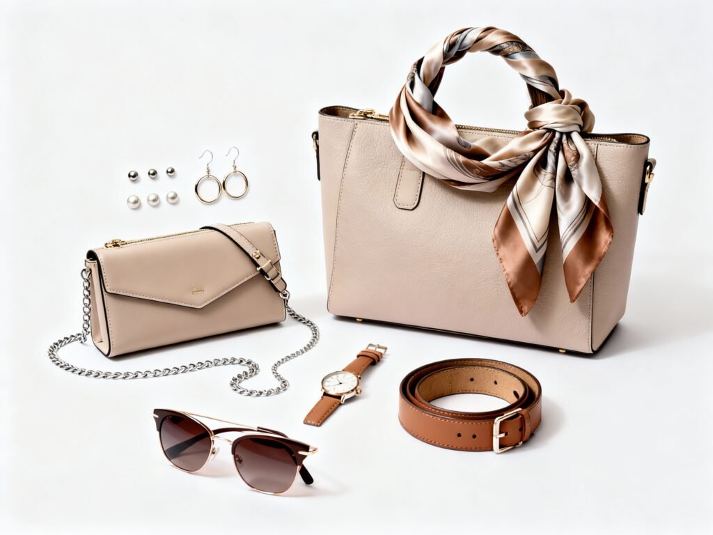 - Silk scarf (neck, hair, bag—triple duty)