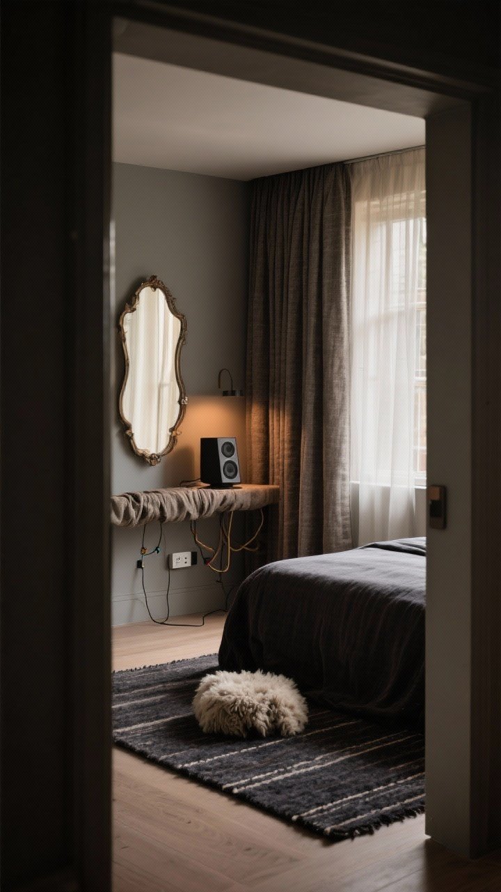 - Mirror Placement: Antique or smoked mirrors to bounce light without breaking the mood; avoid directly facing the bed if it feels too bright or busy.