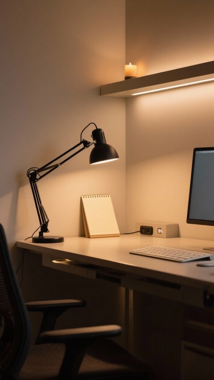 Tip: If your desk faces a wall, bounce light off it for a soft, ambient feel. Avoid anything scented or flickering—this is a workspace, not a meditation cave.