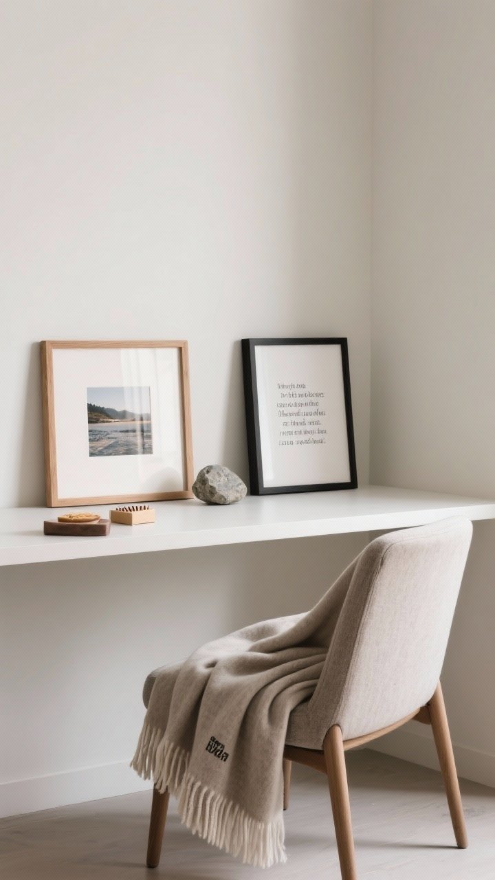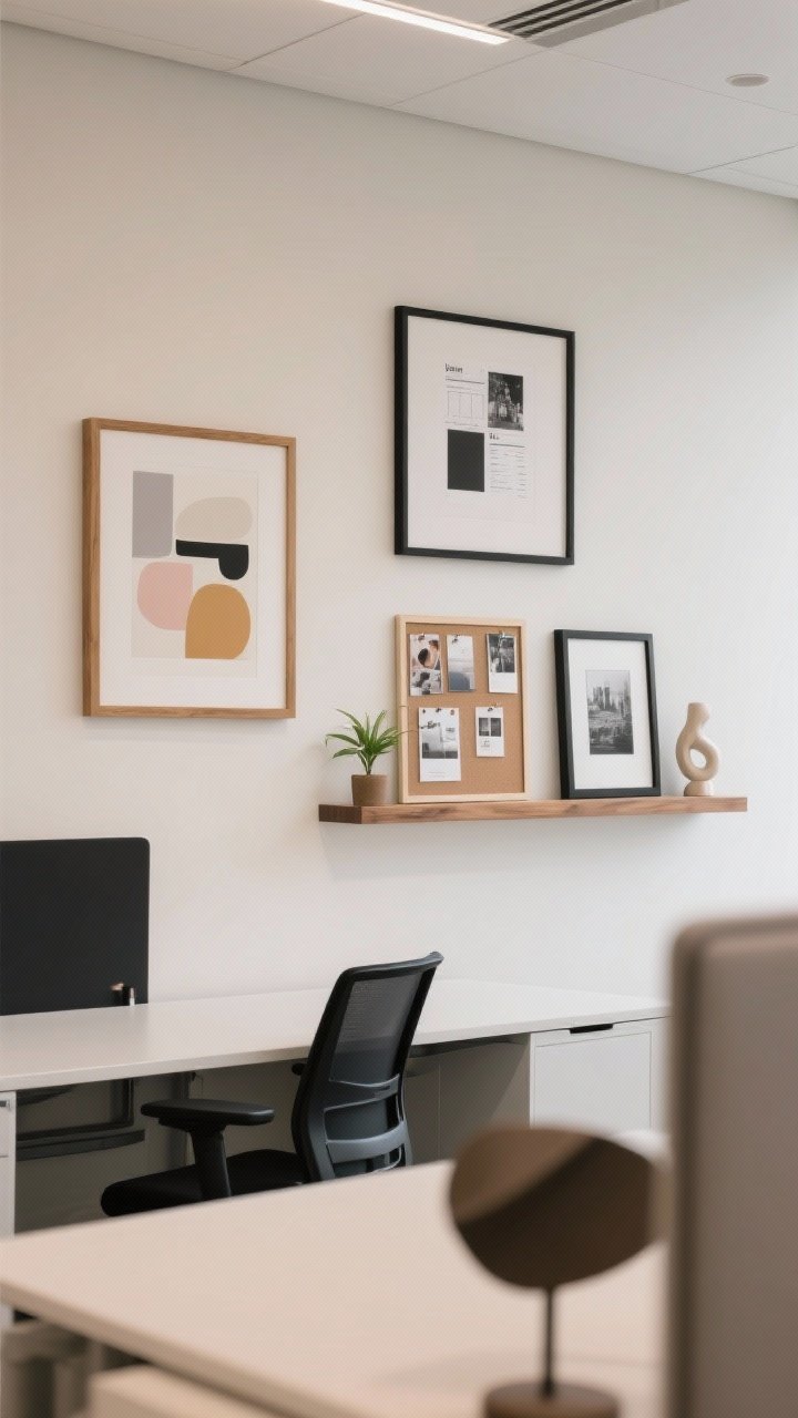 - Framed prints: Abstract art or photography in muted colors reads polished and professional.