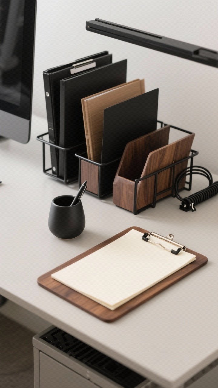 - File chaos → Matching folders + magazine holders: Keeps papers upright and tidy.