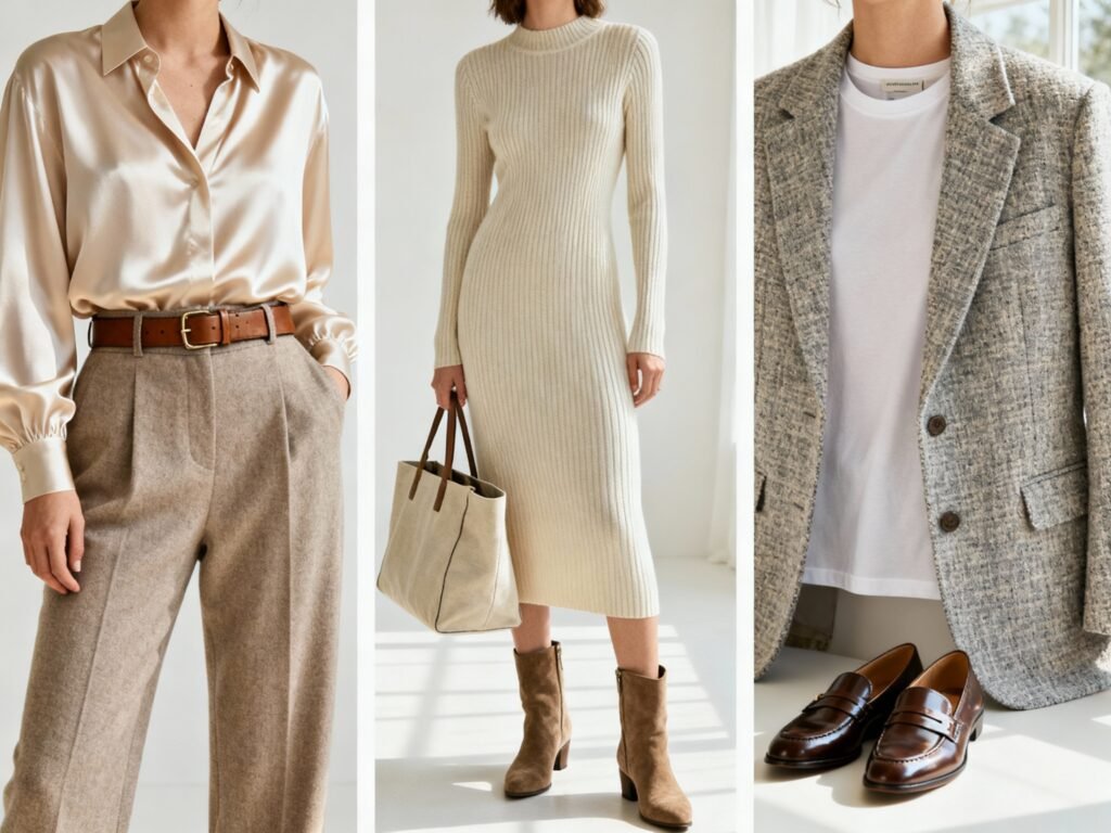 - Safe but chic combos: navy + camel, charcoal + ivory, olive + black, chocolate + cream.
