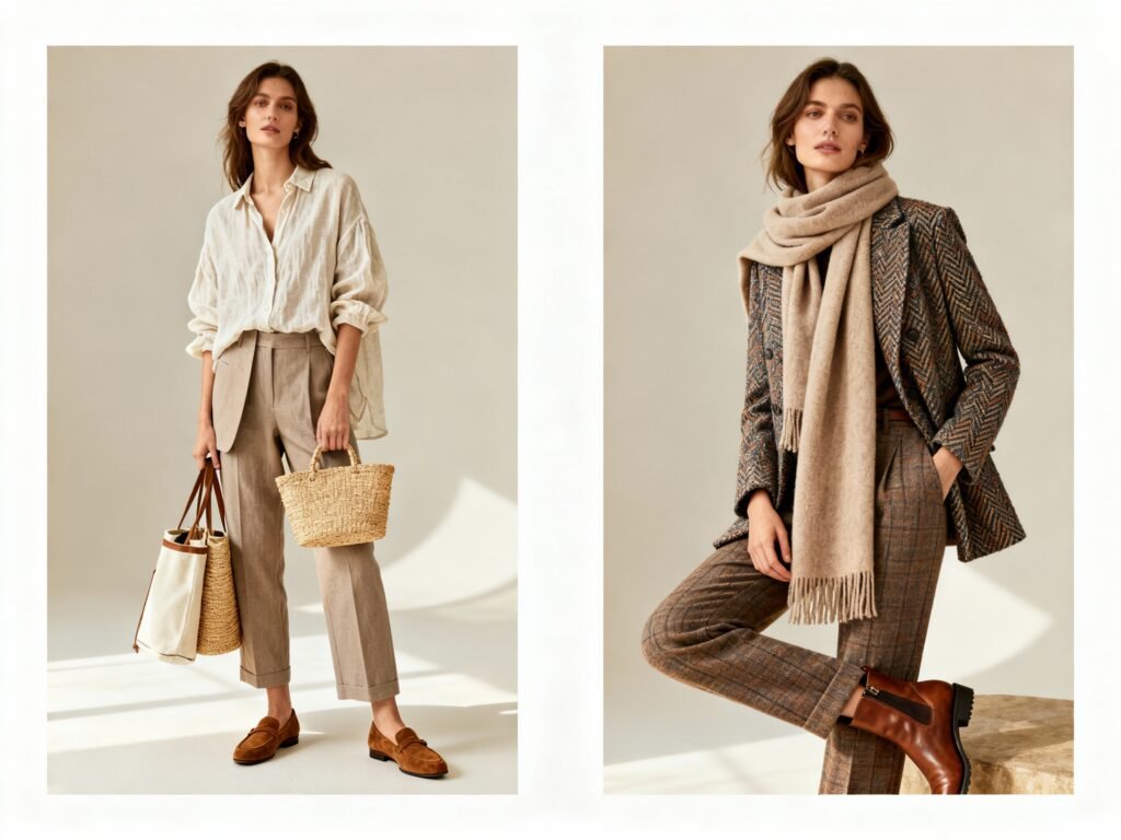 - Spring/Summer: linen shirts, cotton suits, suede loafers, straw or canvas accessories.