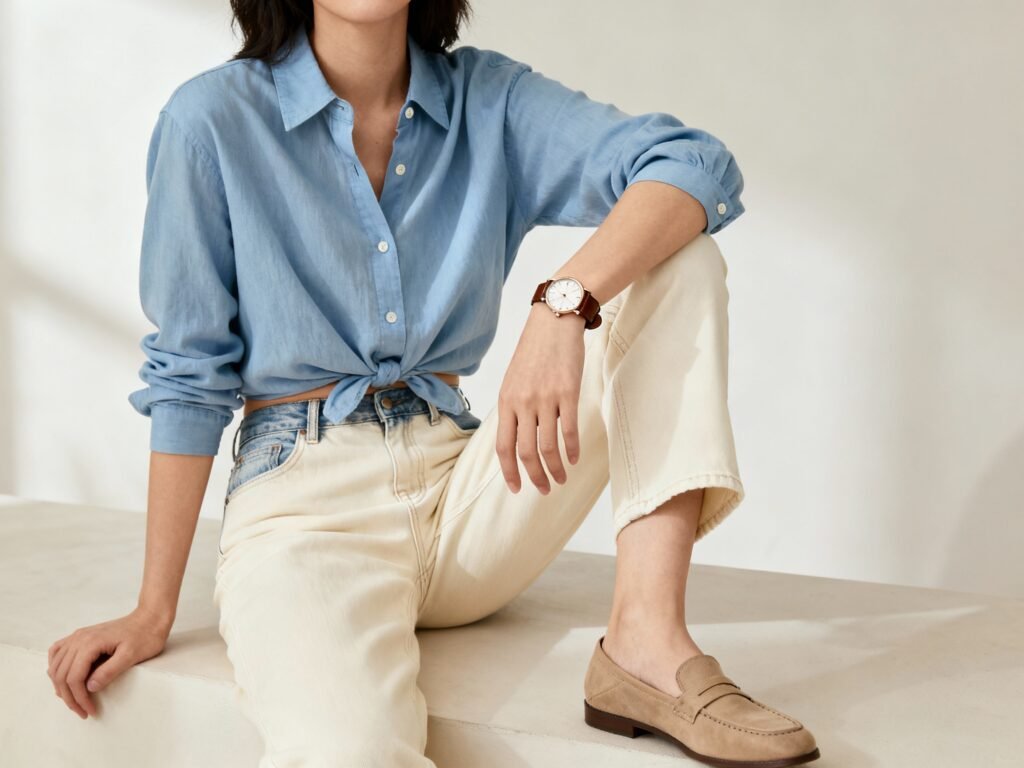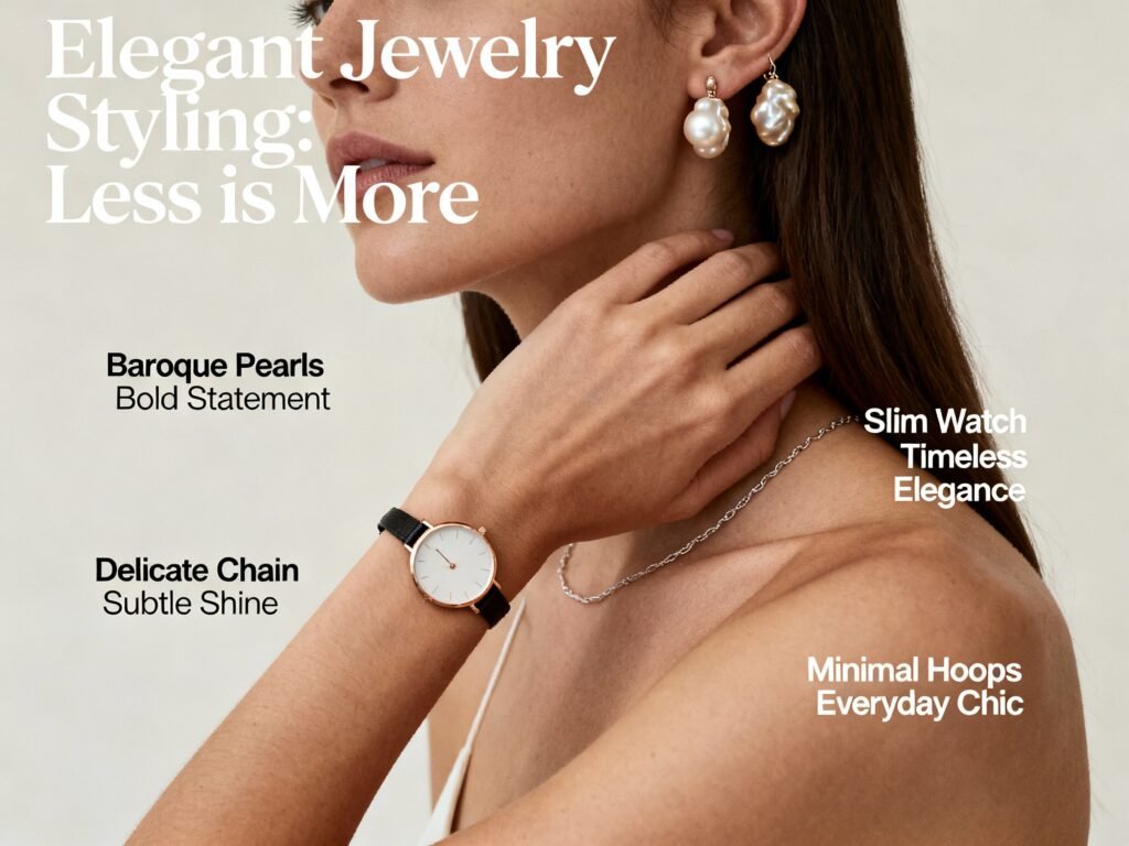 A slim watch, delicate chain, or minimal hoops polish everything. Keep one hero piece at a time so your look breathes.
