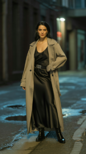 Trench coats or wool coats: Classic outerwear that pairs beautifully with flowy dresses.