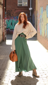 Cropped sweaters look great with midi or maxi dresses—they highlight your waist instead of hiding it.