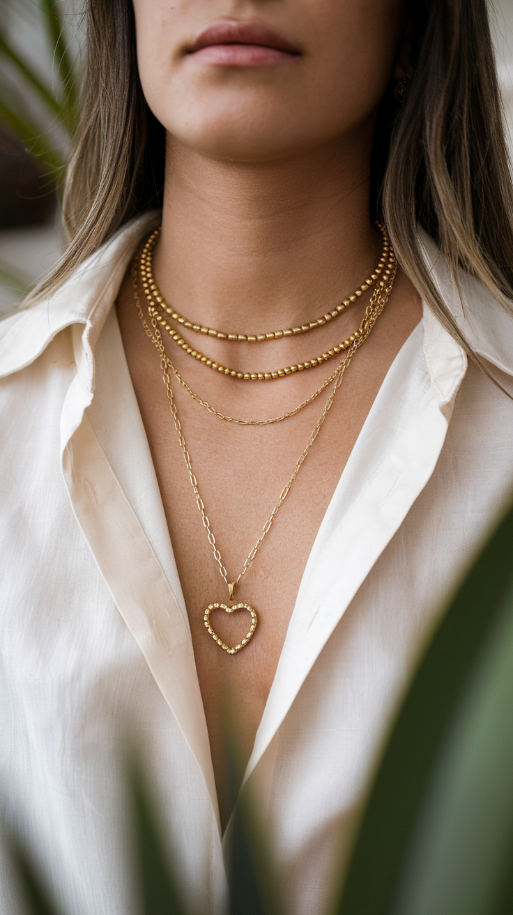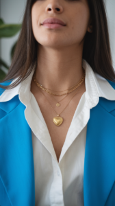 Necklaces: Start with a simple choker or delicate chain (14–16″).