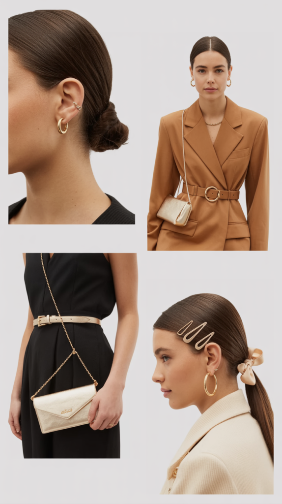 - Gold hoops or slim huggies for everyday shine