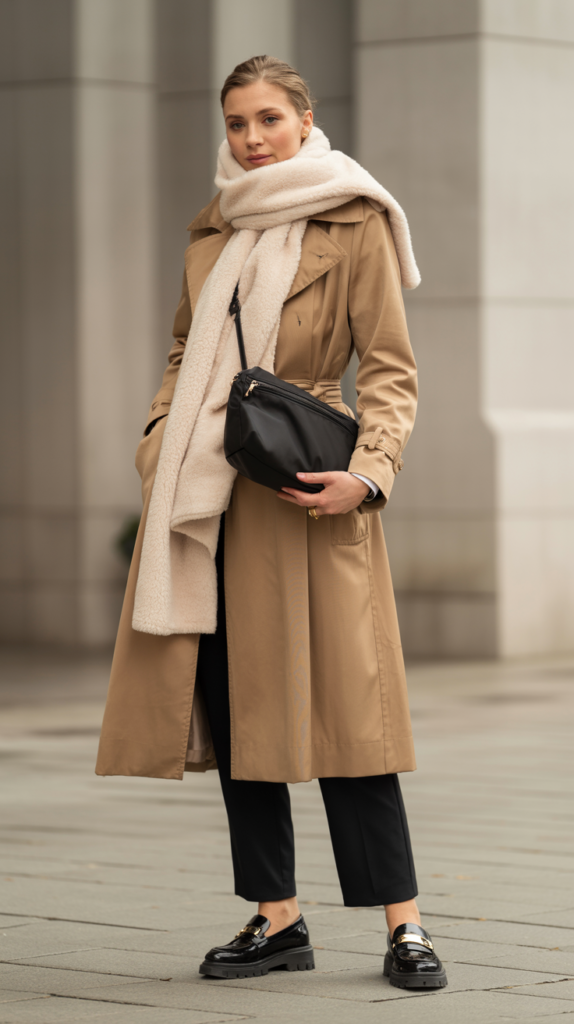 – Subtle plaid trenches pair beautifully with solids and simple trainers. – Animal prints work best in small doses—shoes, scarf, or bag. – If you go bold with a patterned trench, keep everything else minimal.