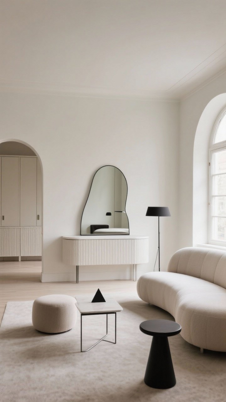 Pro move: balance one bold curve with one strong line. A rounded armchair next to a thin, rectilinear floor lamp? Chef’s kiss.