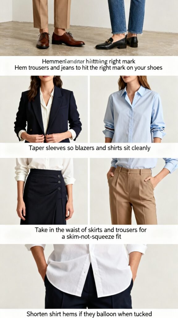 Most people think they need “new clothes” when they actually need a hem, a nip, or a sleeve adjustment.
