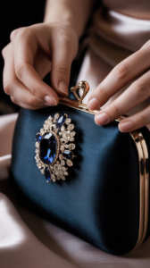 Let’s not ignore the bag—it’s part of the outfit! I love adding a brooch to a plain clutch for a festive touch.