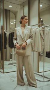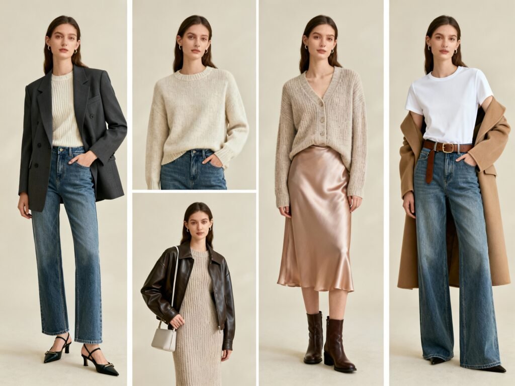 Let textures do the heavy lifting: cashmere, structured denim, smooth leather, and silk for contrast. Proportions matter more than logos.