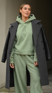 Ever noticed how wearing something soft and fitted can shift your day? Textiles like cashmere, ribbed luxe cotton, and brushed fleece are mood-enhancing. They feel like a hug, but with high-end vibes attached.
