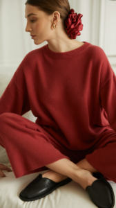 You’ll still be comfy-channeling your inner sloth, but now you’ll look like it’s deliberate and curated. A matching knit set says “elegant lounge queen,” not “I fell into my laundry basket.”