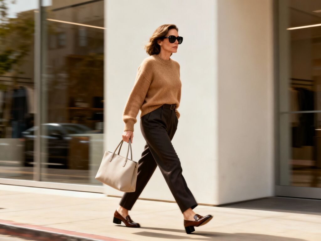 Try a cashmere sweater + tailored trousers + structured bag. Add sunglasses and a clean watch. You’ll look expensive at 10 a.m. without trying too hard, FYI.