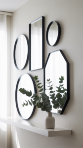 Pro tip: Mix sizes! Use a large round or arched mirror as the anchor, then layer a smaller ornate or vintage mirror in front. Lean them casually—yes, leaning is chic now—and let the angles play off each other.