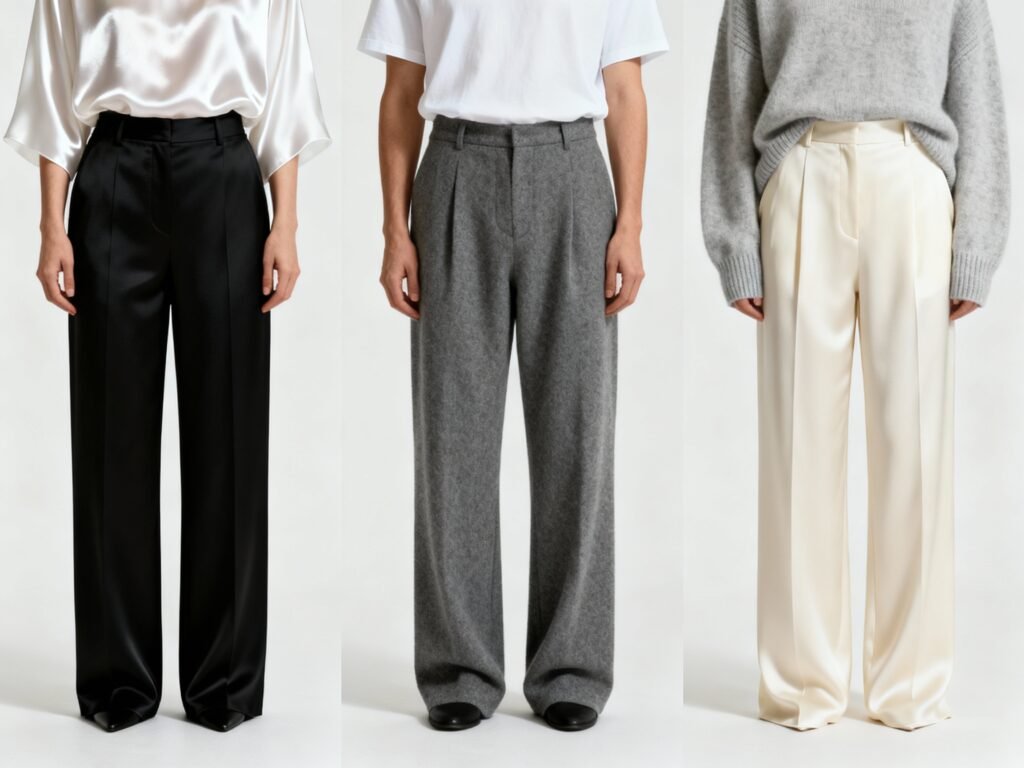 - Structured layers: Boxy blazer or tailored coat sharpens the flowy pants.