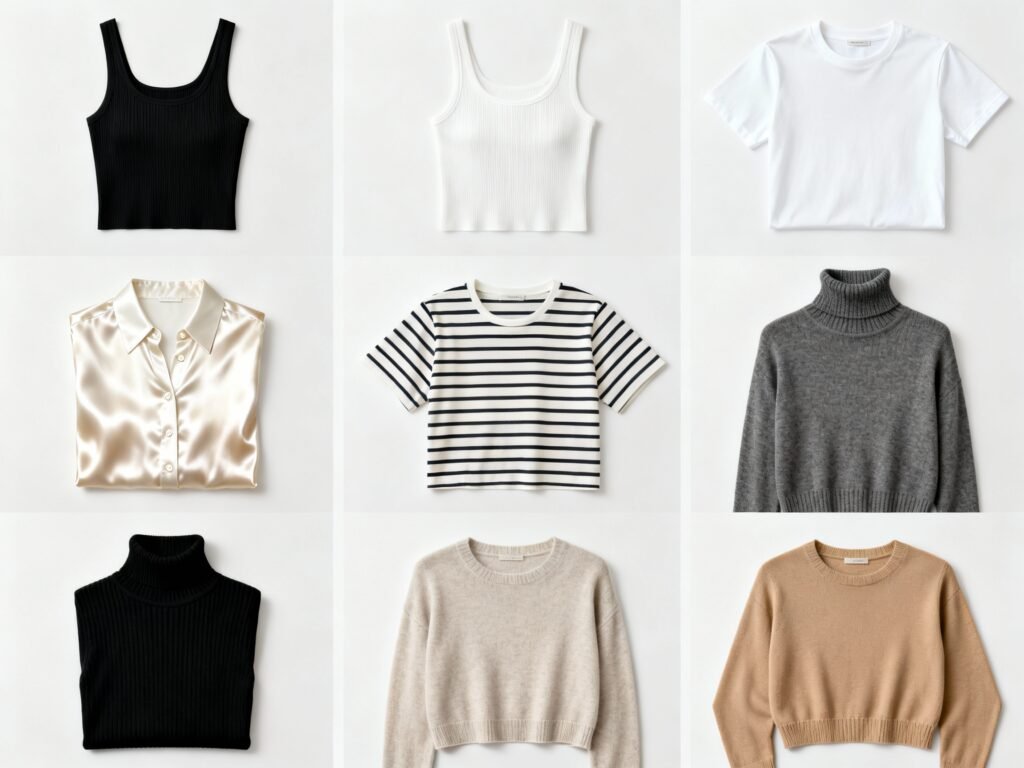 - Cropped or tucked tops: Show the waist to avoid the “fabric puddle” effect.