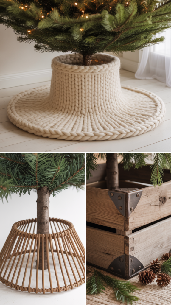 The bottom of the tree needs love too. You don’t want gorgeous ornaments sitting above an old towel and some power cords. 🙃